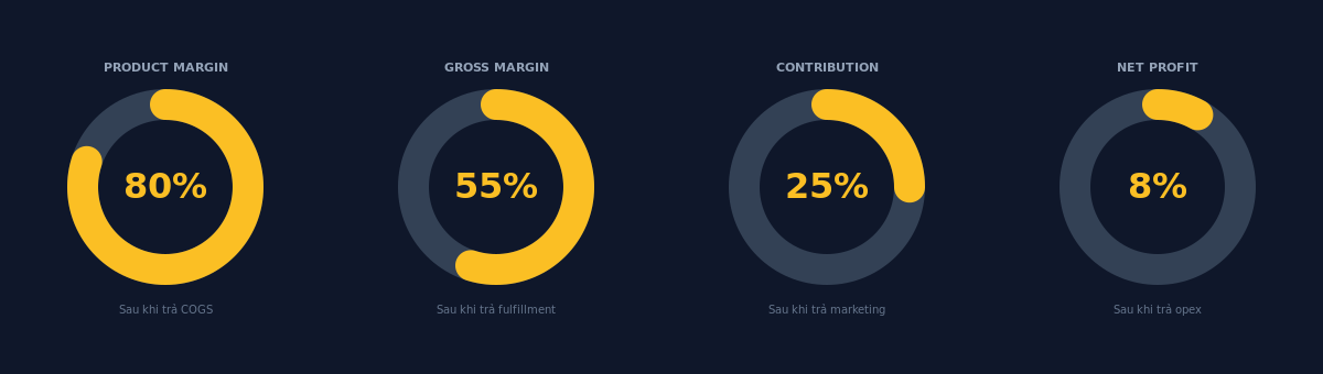 Trong hai bài trước, mình đã chia sẻ về Product Margin và Gross Profit Margin hai chỉ số đầu tiên để đánh giá sức khỏe của Ecom Business. Hôm nay, mình sẽ đi sâu vào hai chỉ số cuối cùng trong bộ 4 Margin: Contribution Margin và Net Profit Margin.
